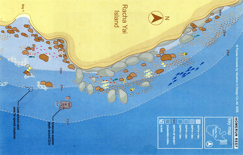 全垒打礁石是Racha群岛中很受欢迎的一个潜水点,位于Racha Yai东北角,紧挨着1号湾,有一个漂亮的岩石斜坡,有各种各样的软珊瑚和硬珊瑚,还有大量的海洋生物。关于名称的起源有两种说法,点击下面的按钮了解更多。